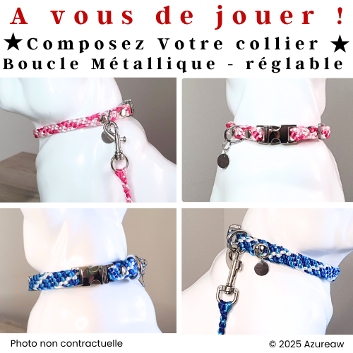 * Possibilité de créer une laisse assortie pour un ensemble harmonieux et sur mesure.