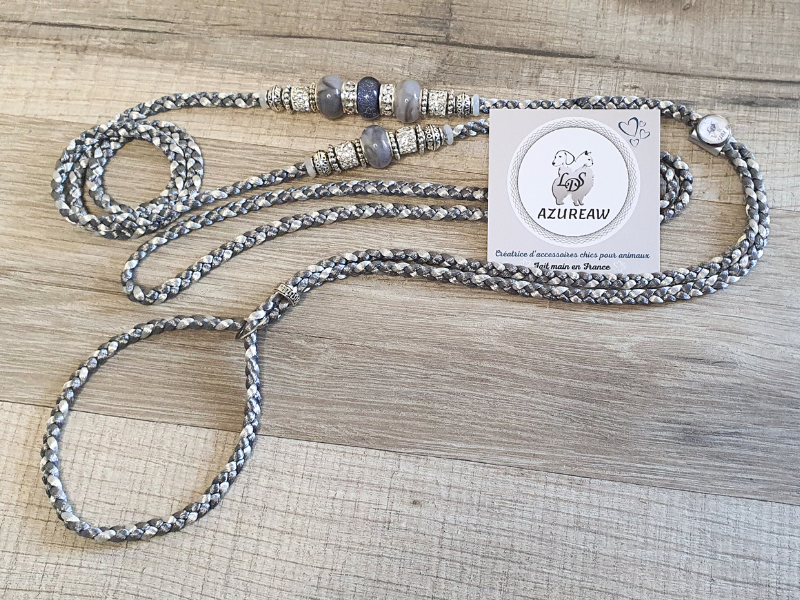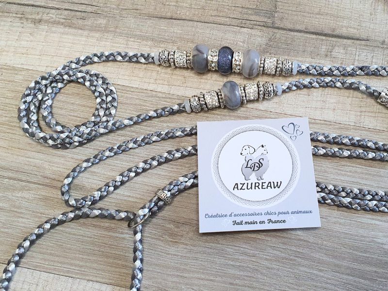 * Conçue en cordon de satin ultra-doux, Gris & Argenté, elle protège le poil de votre chien tout en assurant une tenue raffinée.
