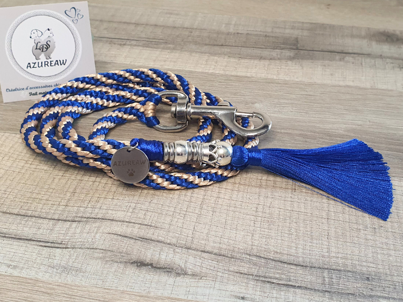 * Cordon de satin ultra-doux Bleu roi & Champagne, conçu pour protéger le poil de votre chien tout en offrant un maximum de confort.
