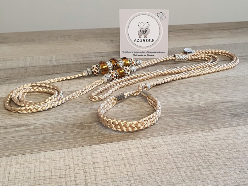 * Conçue en cordon de satin ultra-doux Champagne, elle protège le poil de votre chien tout en assurant une tenue raffinée.