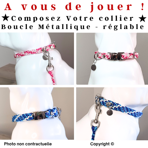 * Possibilité de créer une laisse assortie pour un ensemble harmonieux et sur mesure.
