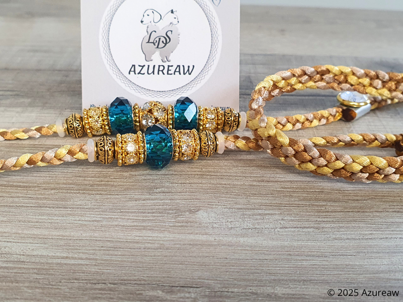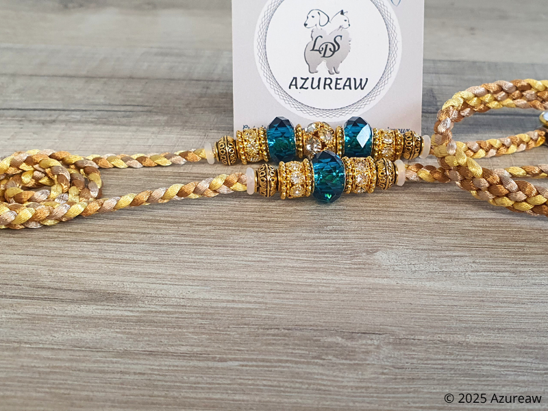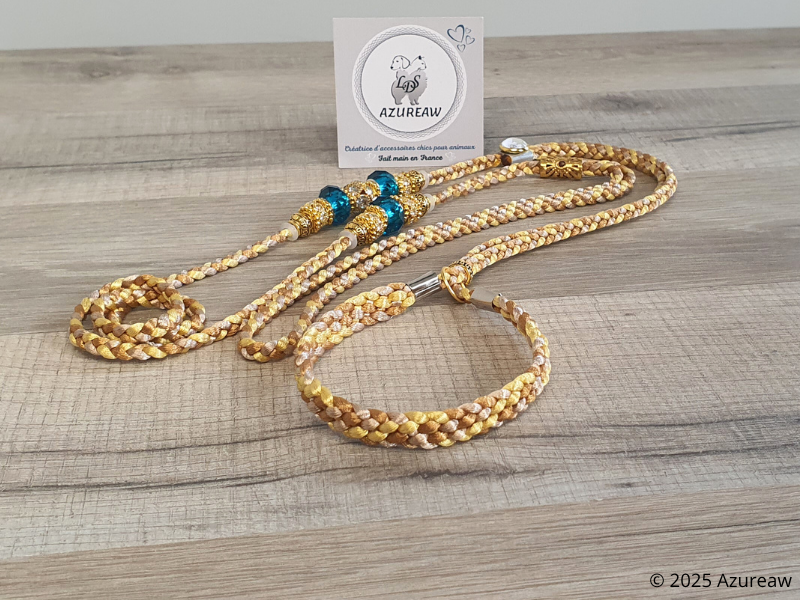 * Conçue en cordon de satin ultra-doux Caramel, Champagne & Doré, elle protège le poil de votre chien tout en assurant une tenue raffinée.