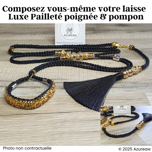 Laisse de Présentation LUXE PAILLETÉE avec Poignée & Pompon Amovible -Personnalisable